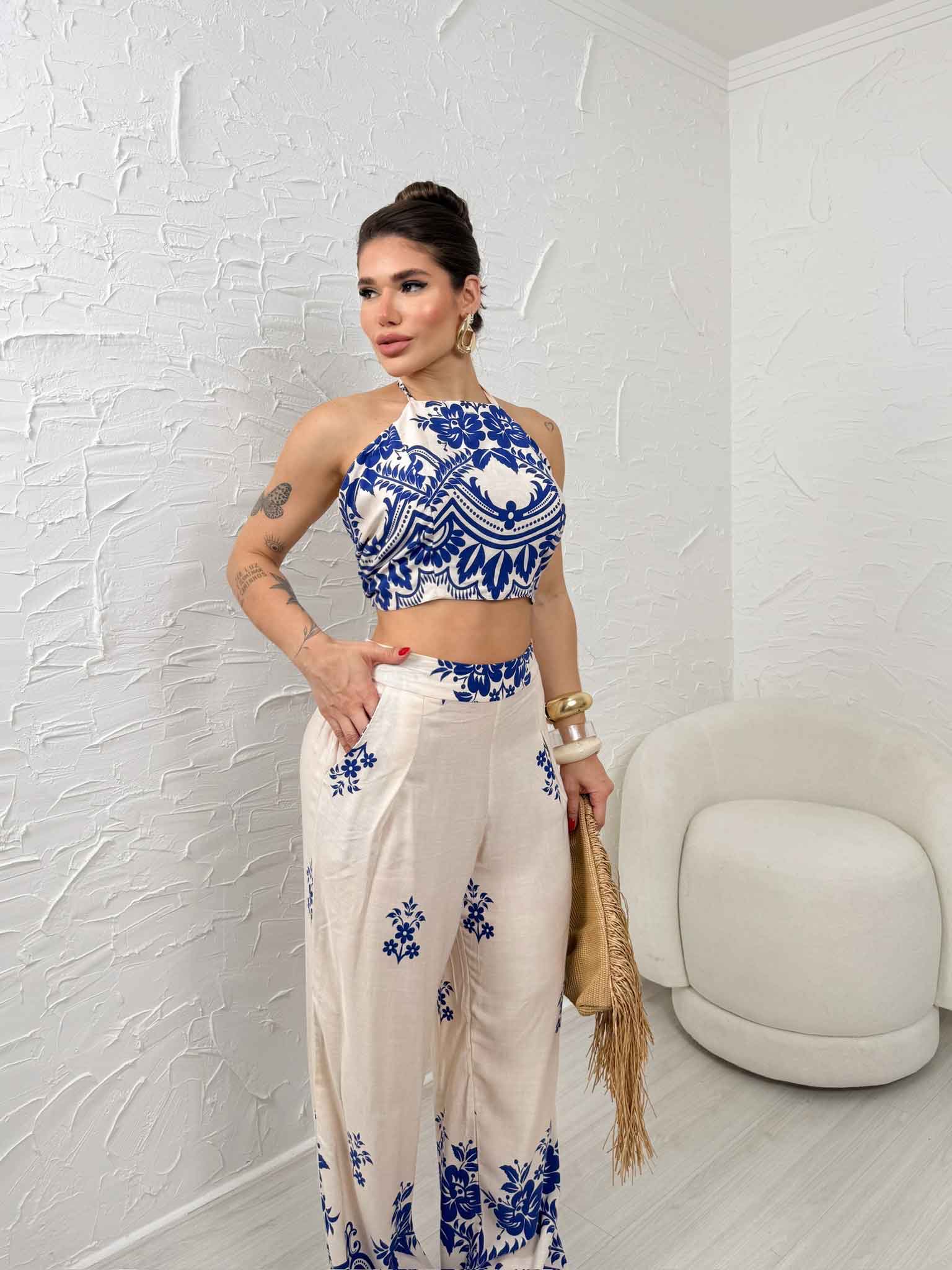 Detalhes: Amarração no pescoço e nas costas, estampa exclusiva
