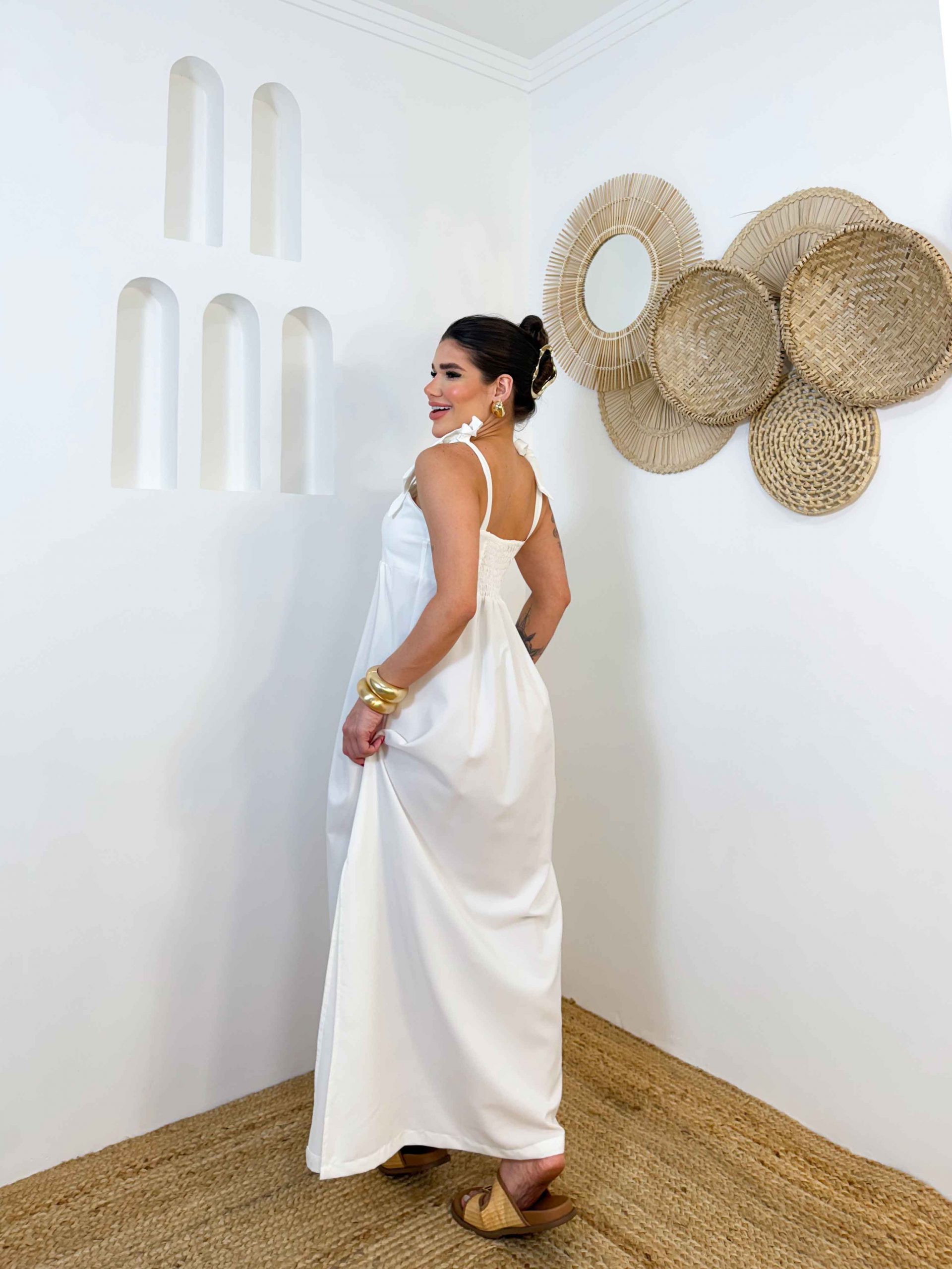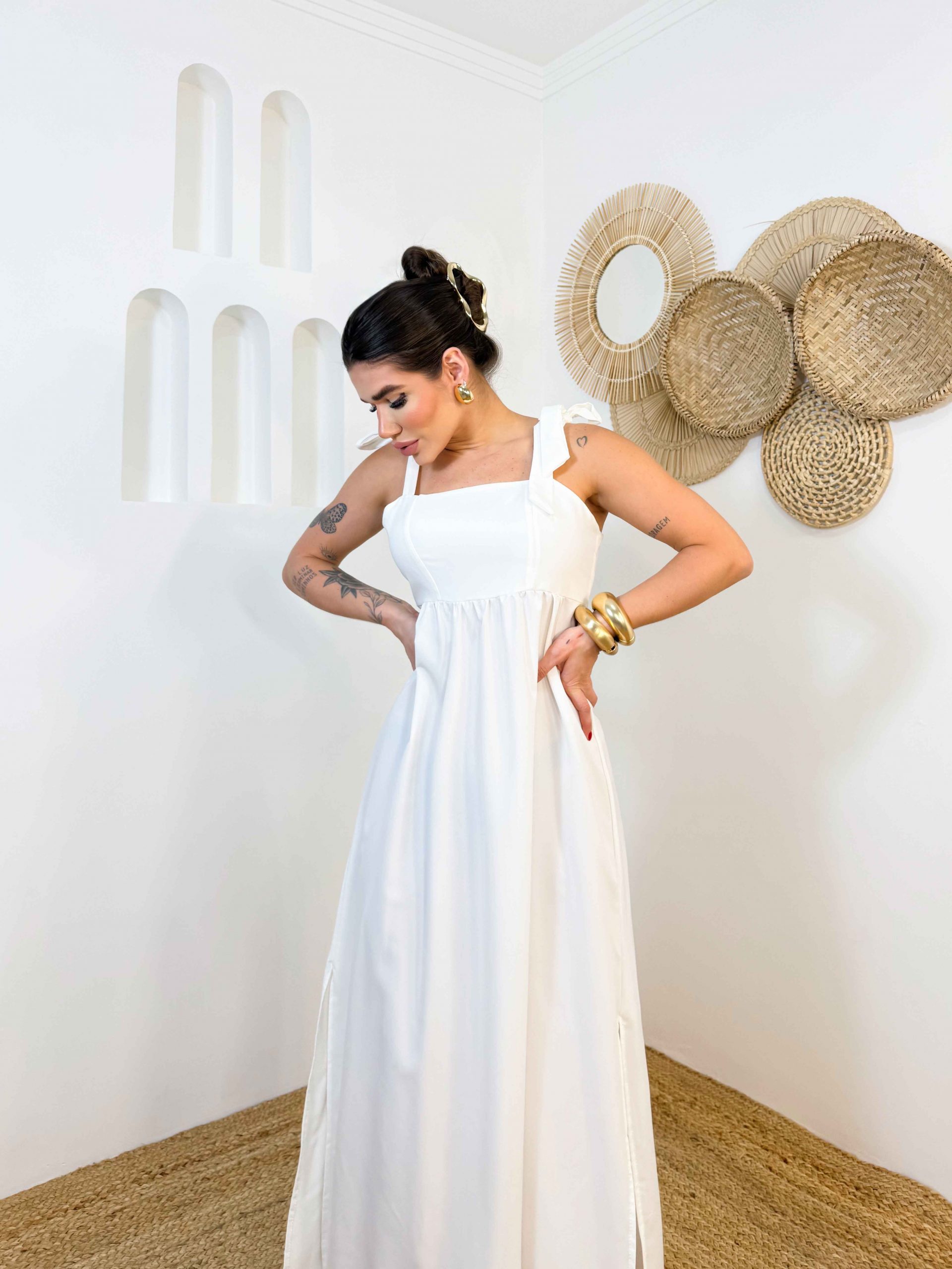O Vestido de Amarrar no Ombro é aquele modelo que valoriza o corpo sem apertar, com lastex nas costas que se ajusta perfeitamente, e ainda conta com fendas laterais que trazem um charme extra pro visual.