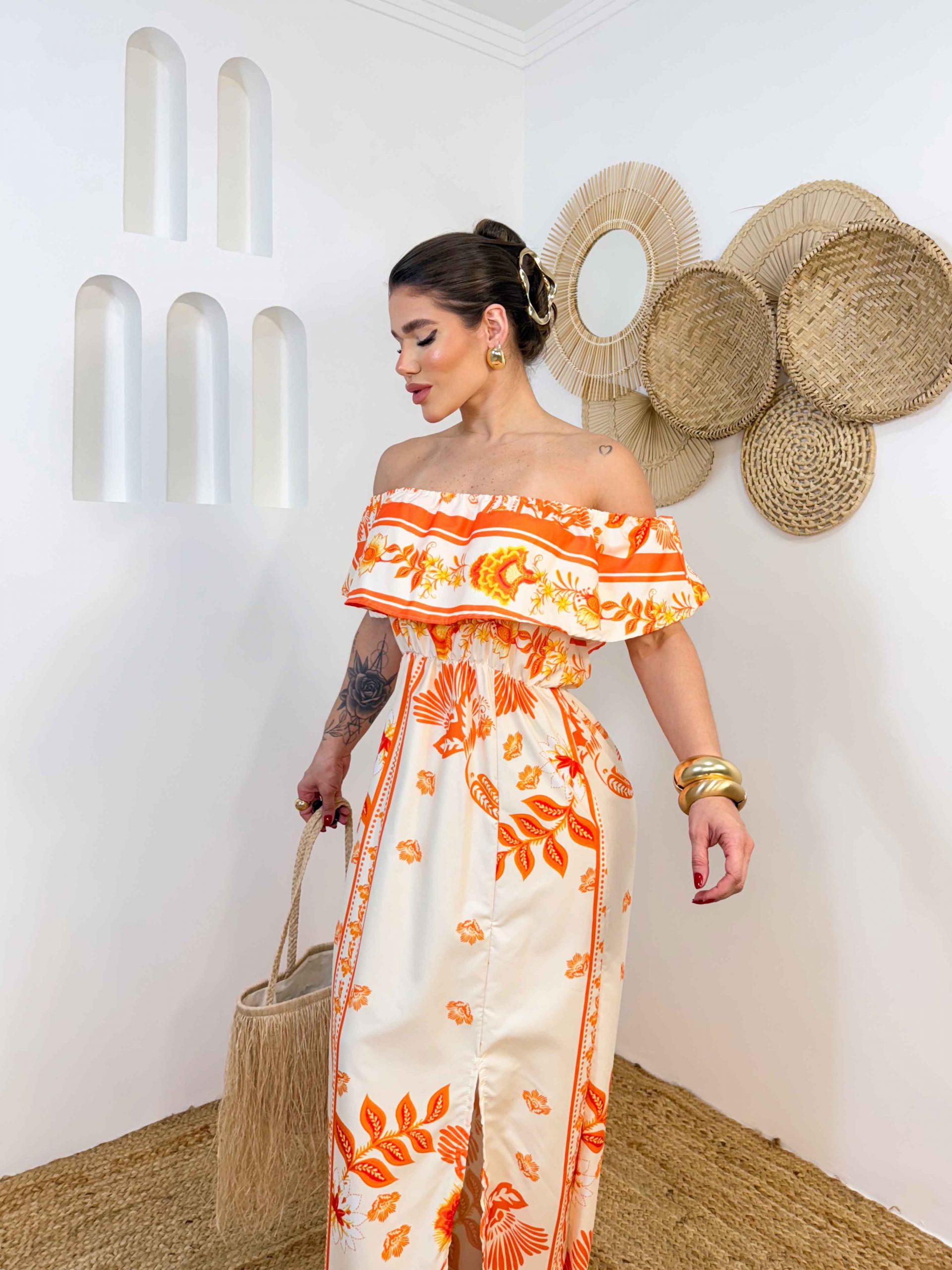 Com decote tomara que caia, babado delicado e fenda lateral, ele valoriza o corpo e garante um visual leve, moderno e super feminino.